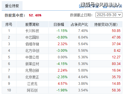 该基金十大持仓中北方华创、新莱应材跌幅较大,江波龙涨幅也较大,前十持仓占总持仓的52.40%,这样对冲下来我不认为有这么大的回调幅度,这个基金原来专注CPO,从三季度看是半导体方向,会不会是近期风格又转回CPO,今天CPO的回撤力度比较大,反而挨上刀子?基金风格属于人工智能行业。基金净值相对跑输市场(属于人工智能行业半导体制造方向的主动型混合基金,但净值与三季报有明显区别,估计已经调整仓位了)【基金规模5.52亿元】。