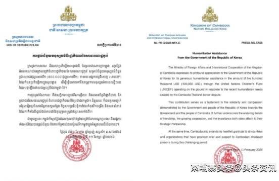 2026-02-15AYX爱游戏,爱游戏体育,爱游戏体育官网,爱游戏APP下载据本地媒体报道,柬埔寨外交部于2月11日晚发布消息指出,韩国政府通过联合国儿童基金会向柬埔寨提供50万美元的人道主义援助,以帮助解决近期柬泰边境局势引发的紧急人道主义需求。柬埔寨外交部对韩方的慷慨捐助表示深切感谢,并指出此援助体现了韩国政府和人民对柬埔寨及柬埔寨人民展现的深厚情谊与同情心。