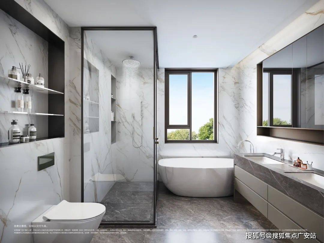 3间套房的设计能满足各个家庭成员的隐私。尤其是主卧,尺度超大,并配置了双台盆+浴缸+淋浴+马桶豪华