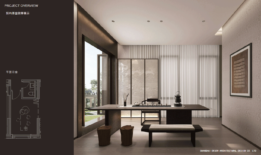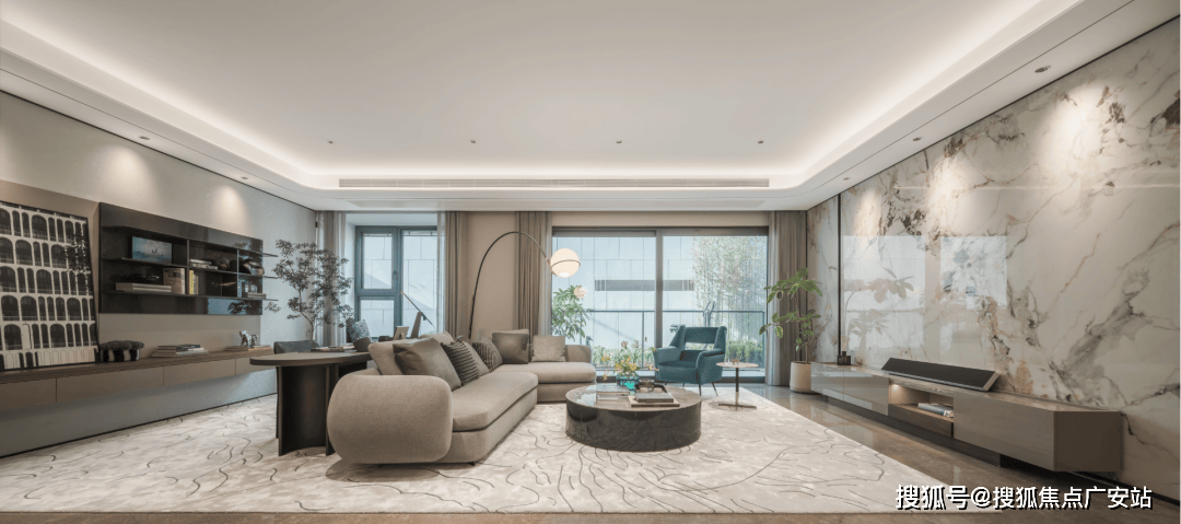 室内设计,秉承摩登东方的理念,设计以人、生活为中心,从空间本体和情感层面都回归生活,270度环幕采光,开放式会客厅设计,兼具尺度感与功能性。