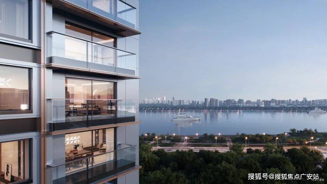 大面积无框开敞阳台玻璃的设计,搭配香槟色金属边框。这个立面的用料、施工中露出的高标准以及高颜值,大家有目共睹。